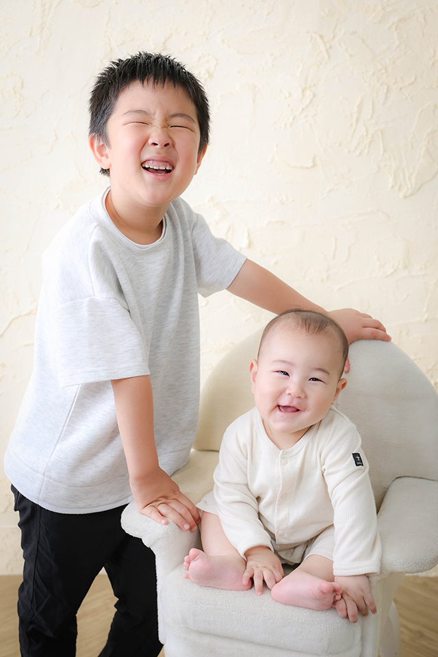 笑顔がそっくりなお二人は、普段から一緒に遊んでいるほど仲良しだそうで、撮影も一緒にお楽しみいただきました。