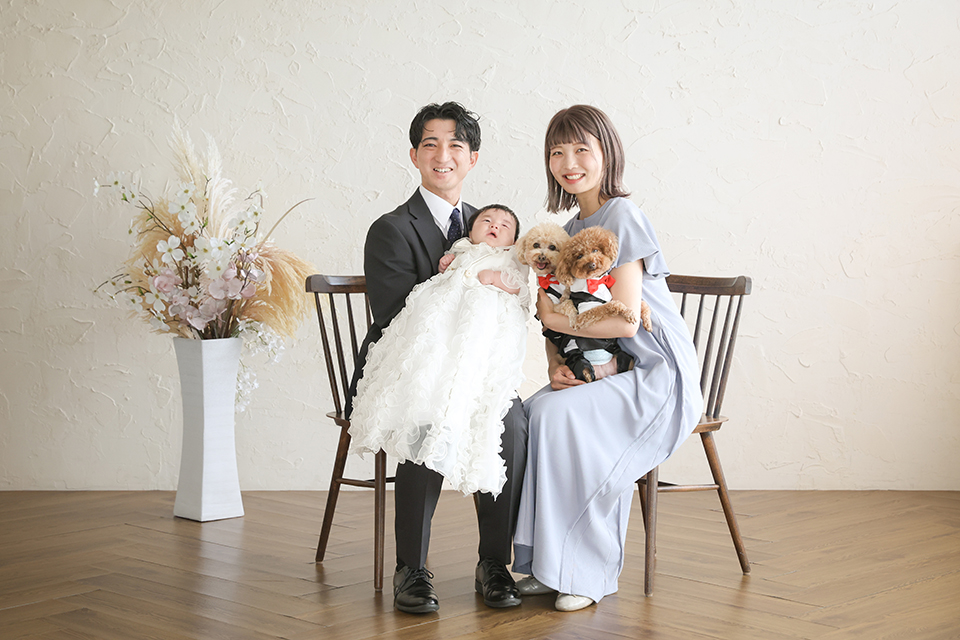 撮影を楽しまれたお母様より「子どもが泣いていても、ワンコがいてもスタッフさんが皆さんとても優しく楽しく撮影して頂いてとても嬉しかったです。ありがとうございました」と嬉しいご感想を頂けました。