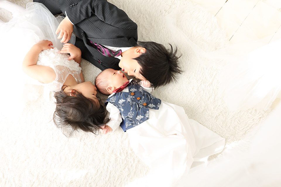 スライドショーで仕上がりをご覧になったお母様より「当日、長男の機嫌が悪く、別日で撮り直して頂きありがとうございました。おかげさまで、3きょうだいの写真も残せて大変感謝しております。ステキな写真をありがとうございました」とお言葉を頂けました。