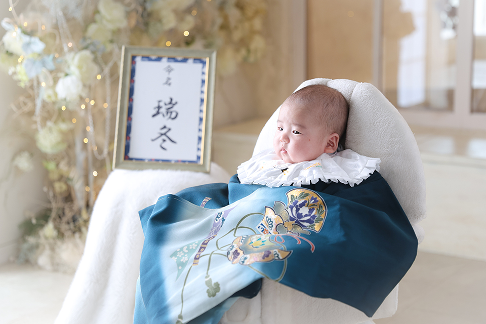 おしゃれなフォトスタジオ「アンズガーデン松戸店」(松戸市)を以前よりご愛顧頂くご家族が、「上の子の七五三で良くしていただいたので、今回もお願いしました」と、今回は弟様のお宮参りのお祝いでお越し下さいました。