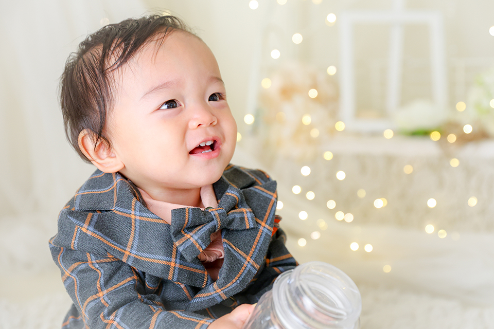 松戸市のおしゃれな写真スタジオ「アンズガーデン松戸店」に「前回の撮影が良かったから」と、1stバースデーのお祝いでお越し下さいました。