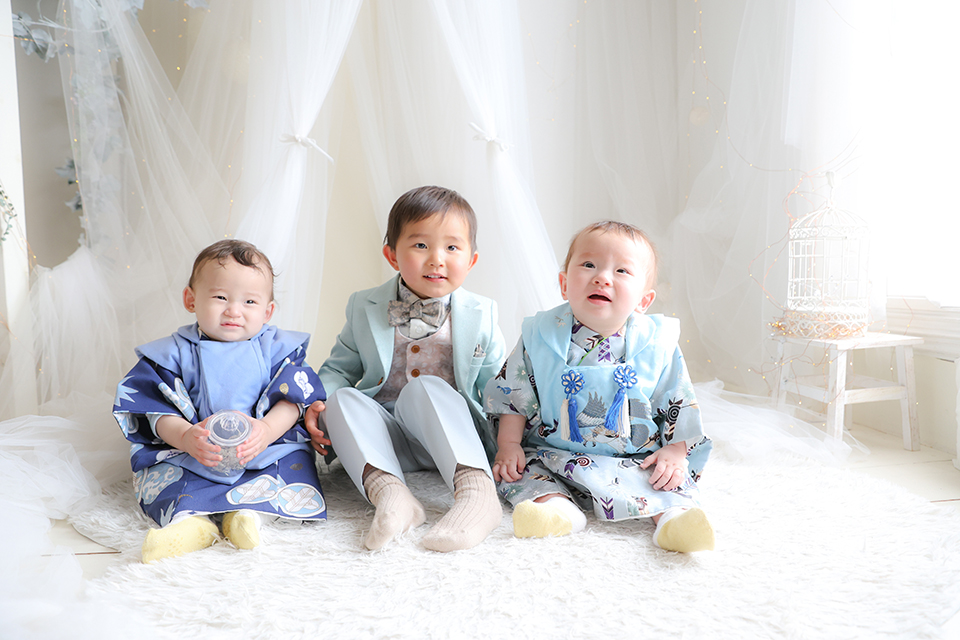 主役のお一人撮影に加えて、3人ショットや双子の2ショットなど可愛い姿をたくさん撮影させて頂きました。