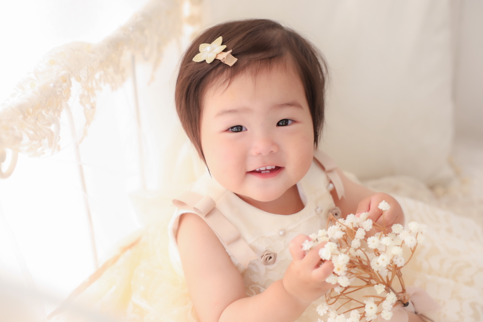 横浜市中区のおしゃれなフォトスタジオ「アンズガーデン横浜店」で撮影させていただいた1歳バースデーのお祝いの写真です。