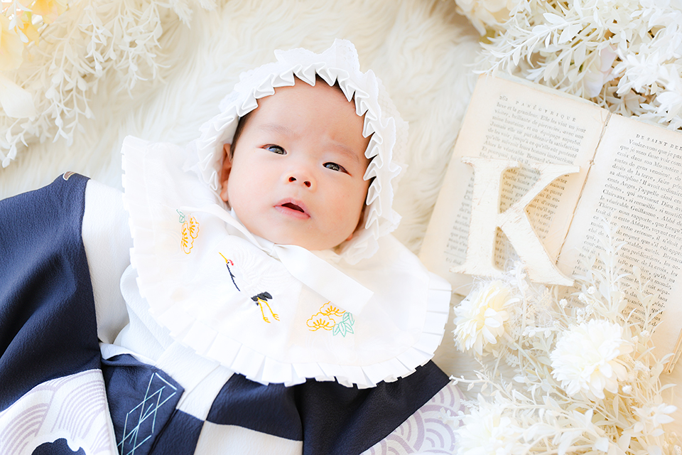 千葉市美浜区のおしゃれな写真館「アンズガーデン幕張本店」にお宮参りのお祝いでお越し頂いた男の子様です。