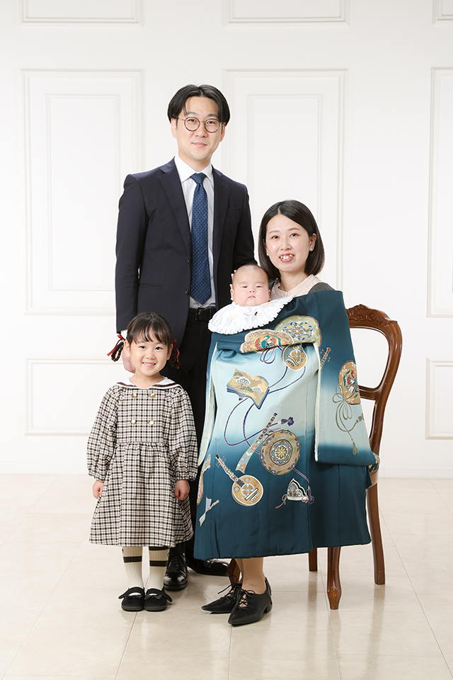 おしゃれなフォトスタジオ「アンズガーデン松戸店」(松戸市)を以前よりご愛顧頂くご家族が、「上の子の七五三で良くしていただいたので、今回もお願いしました」と、今回は弟様のお宮参りのお祝いでお越し下さいました。