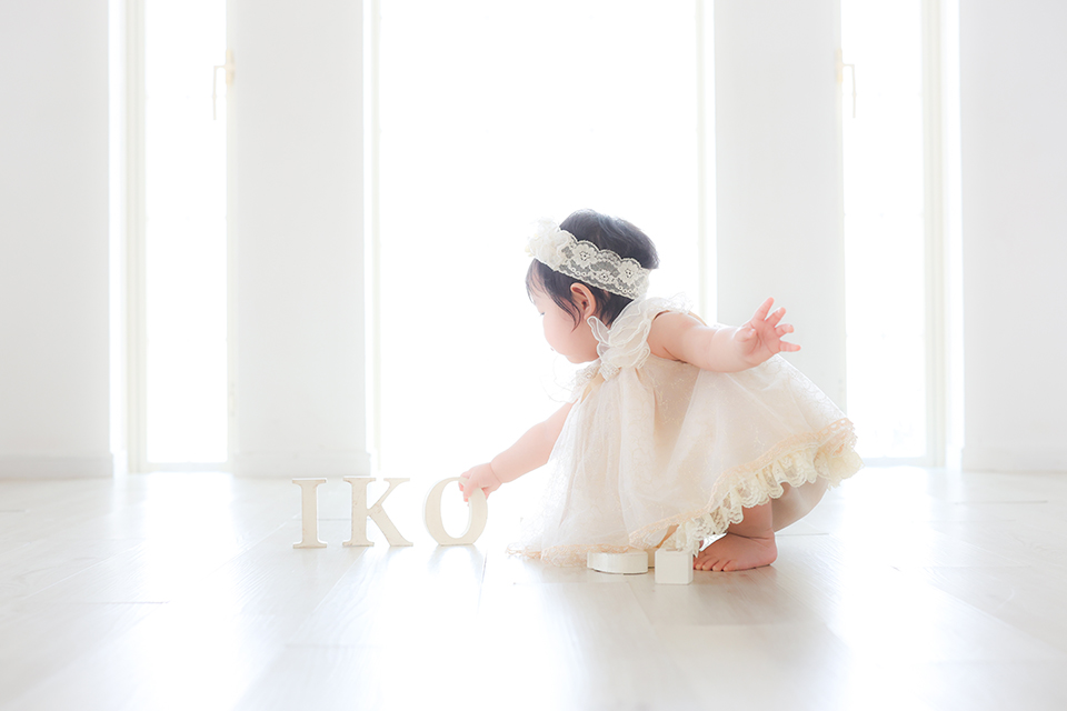 千葉市美浜区のおしゃれな写真館「アンズガーデン幕張本店」に1才バースデーのお祝いでお越し頂いたお嬢様です。