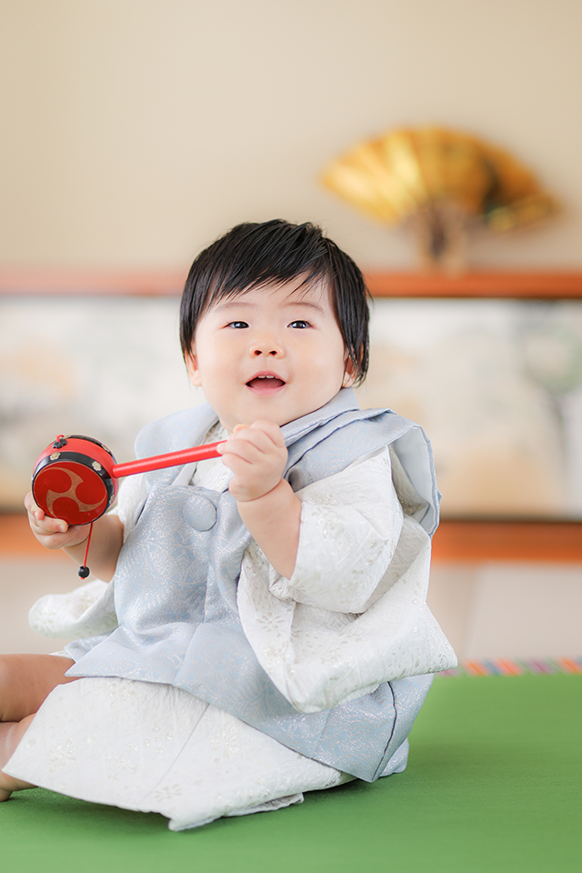 当館人気の和室で、和装姿の1歳様をお撮りした素敵なポートレートです。