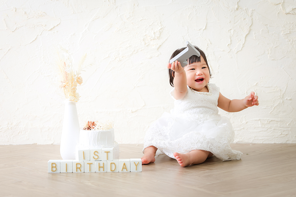 市川市にあるおしゃれな写真館「アンズガーデン市川店」でお撮りした1才バースデーの記念写真です。