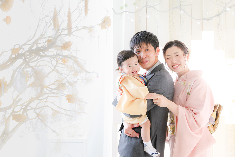 千葉市美浜区のおしゃれな写真スタジオ「アンズガーデン幕張本店」に1才バースデーのお祝いでお越し頂いたご家族様です。