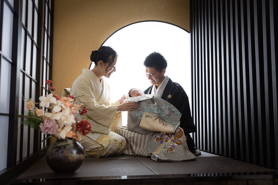 当店には着物にぴったりの和室があり、和の雰囲気の中でお子様をあやすご家族様の素敵なワンシーンを撮影させて頂きました。