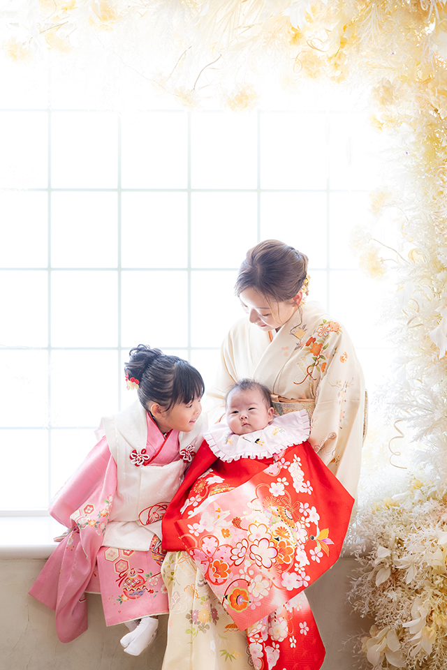 ママが抱っこする赤ちゃんのお顔を覗き込むお姉様は、新しくできた妹が可愛くて仕方がないご様子で、お名前を呼んだり頭を撫でたり、嬉しそうに可愛がっていらっしゃいました。