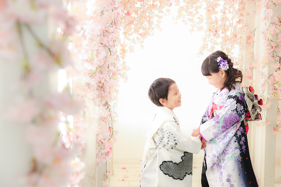 市川市にあるおしゃれな写真館「アンズガーデン市川店」で撮影された七五三7才・5才のお祝いの記念写真です。