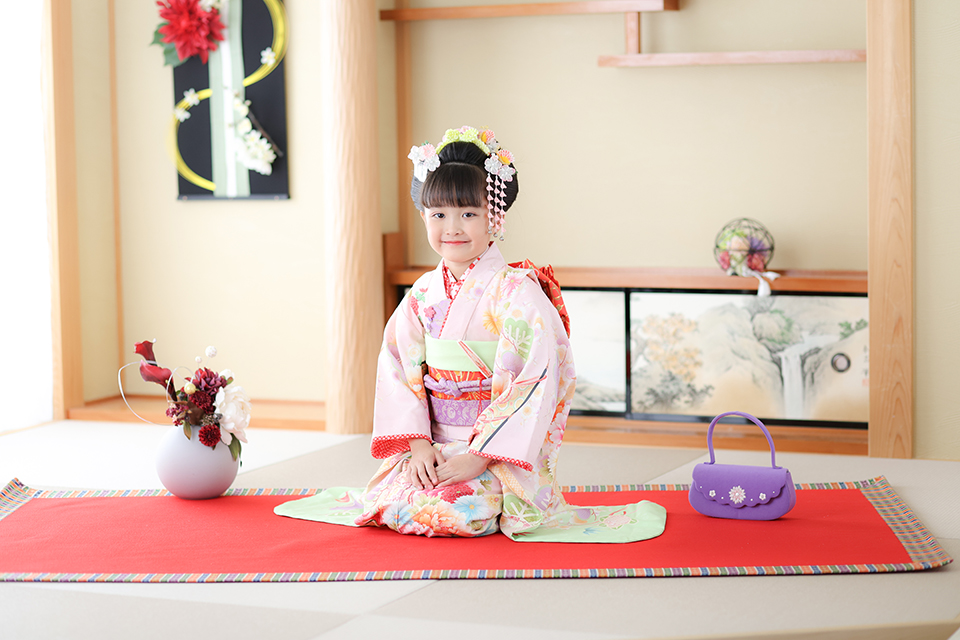 市川店人気の和室スタジオで正座をしているお嬢様。