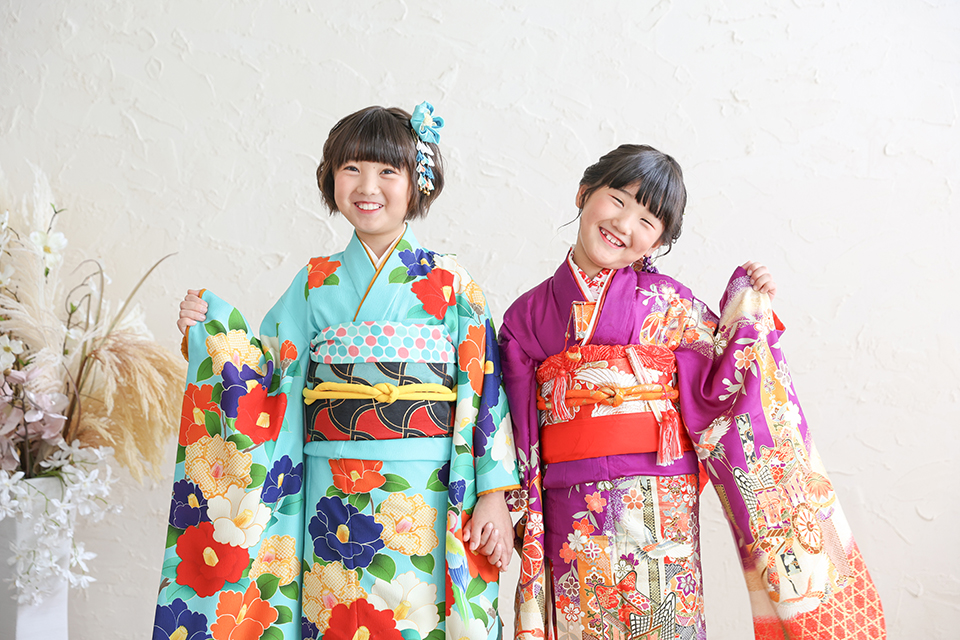 千葉市美浜区のおしゃれな写真館「アンズガーデン幕張本店」に七五三7才のお祝いでお越し頂いたご姉妹様です。