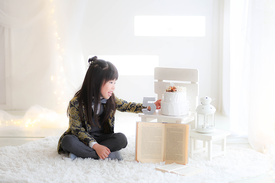 5歳を祝してケーキや5のオブジェなどと一緒にお撮りさせていただきました。
