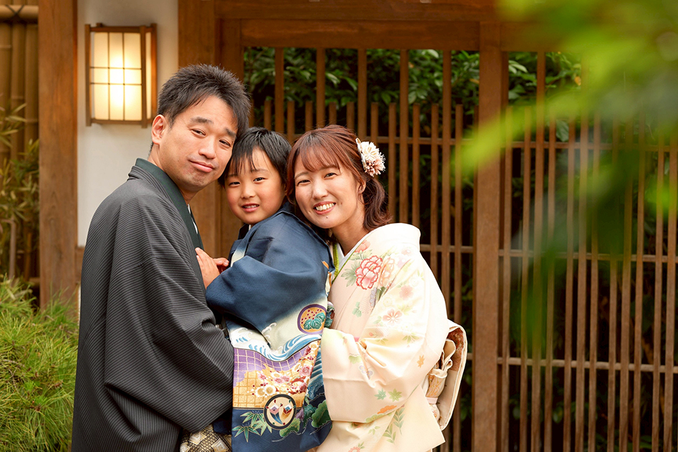 日本庭園スタジオで、ご家族の笑顔がとても素敵なお写真です。