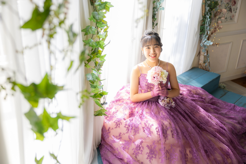 横浜店人気のナチュラルスタジオでドレス姿が大変素敵なお嬢様。