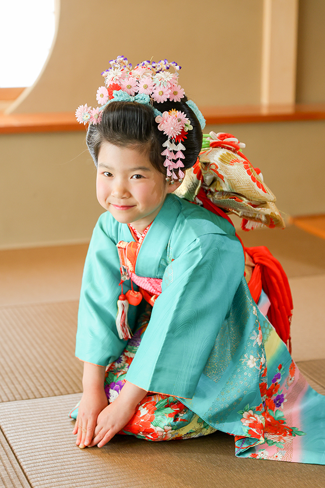和室スタジオで、正座をされるお嬢様の素敵なお写真です。