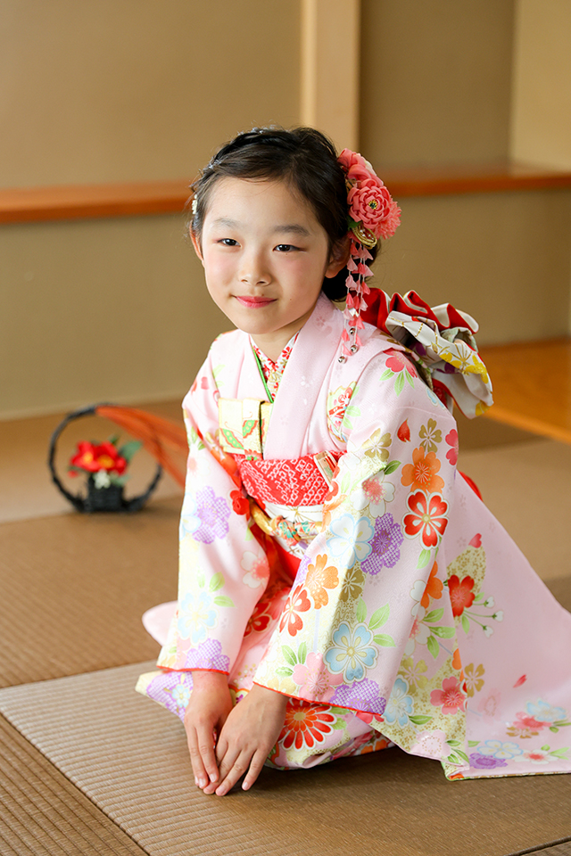 人気の和室スタジオで正座をされるお嬢様の淑やかな姿が素敵なお写真です。