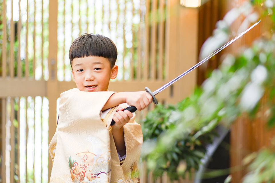 本格的な和風庭園スタジオでは、カッコよく刀を構えられ、勇ましい姿がステキな一枚をお撮りすることができました。