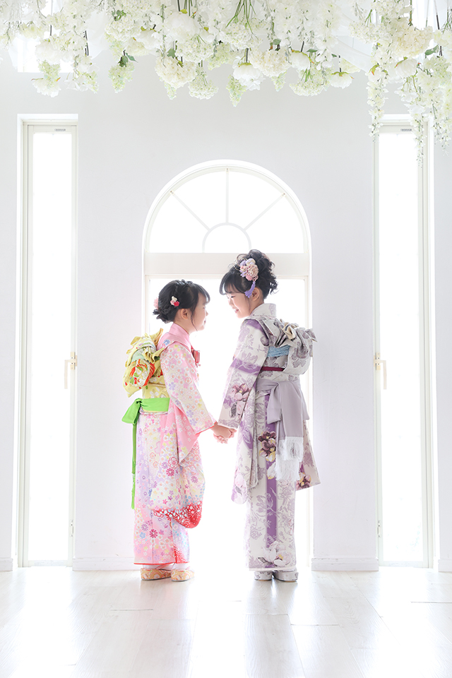 千葉市美浜区のおしゃれな写真スタジオ「アンズガーデン幕張本店」に七五三7才と10才のハーフ成人式のお祝いでお越し頂いたご姉妹様です。