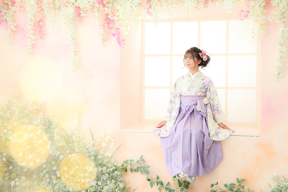 市川市にあるおしゃれなフォトスタジオ「アンズガーデン市川店」に小学校卒業式に袴をレンタルされるお嬢様が前撮りにお越し頂きました。