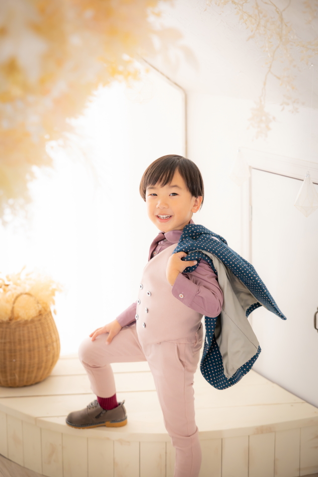 横浜店人気のホワイトツリースタジオでかっこいいポージングの男の子様。