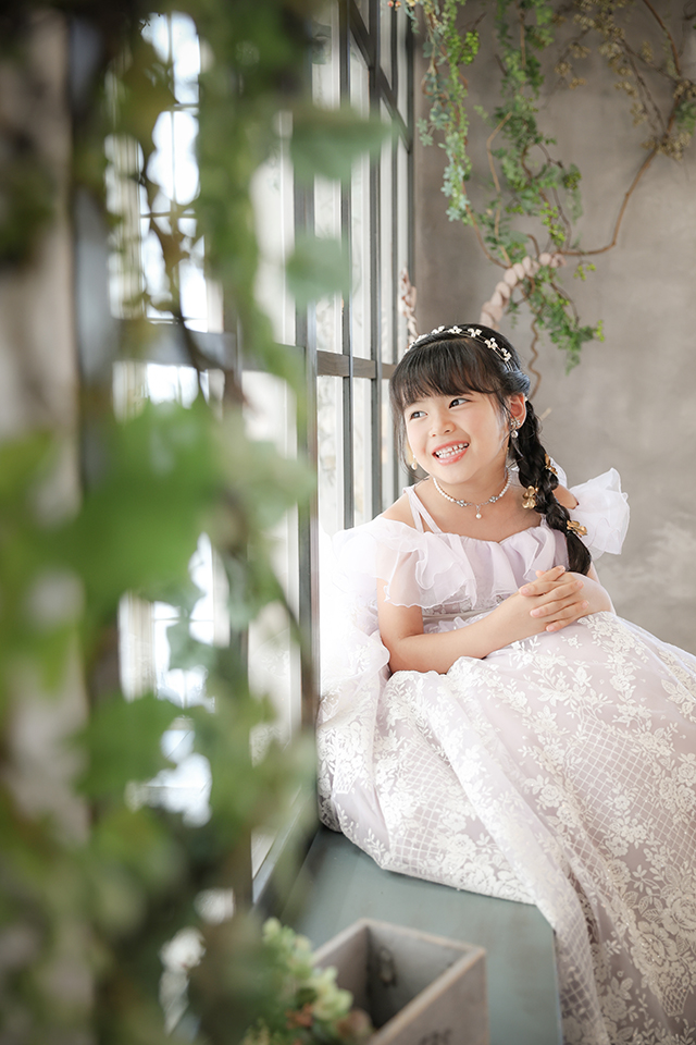 千葉市美浜区のおしゃれな写真館「アンズガーデン幕張本店」に七五三7才のお祝いでお越し頂いたお嬢様です。