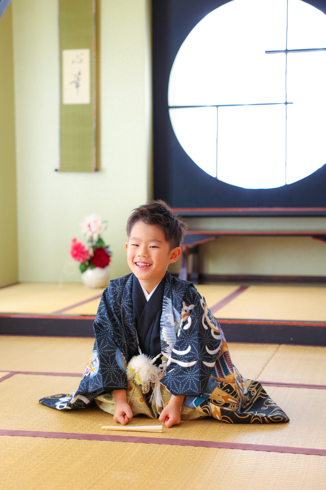 横浜店人気の和室スタジオで羽織袴姿の5歳様をお撮りした素敵なポートレートです。