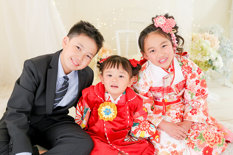 松戸市のおしゃれな写真スタジオ「アンズガーデン松戸店」に「前回も良かったから」と、七五三・7歳と、3歳のお祝いでお越し下さいました。