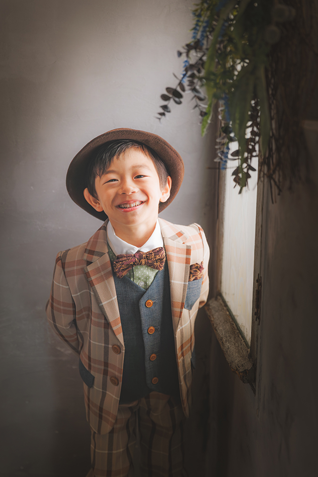 洋装撮影では衣装に合わせた帽子も被り、笑顔が素敵な一枚を撮影させて頂きました。