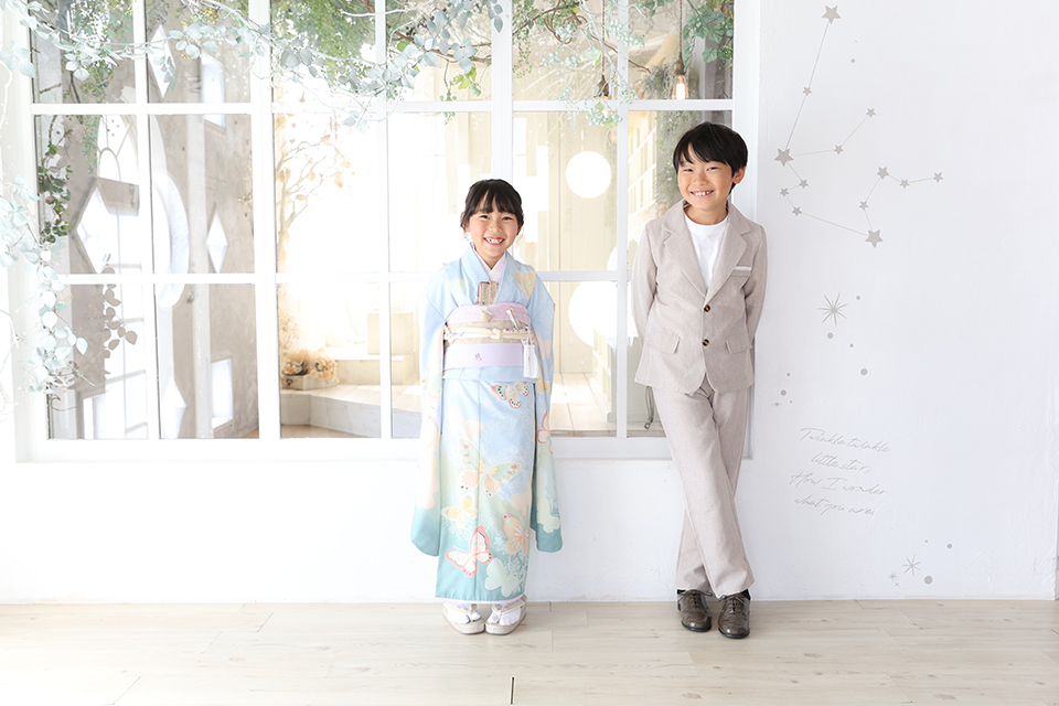 千葉市美浜区のおしゃれなフォトスタジオ「アンズガーデン幕張本店」に七五三7才のお祝いでお越し頂いたごきょうだい様です。