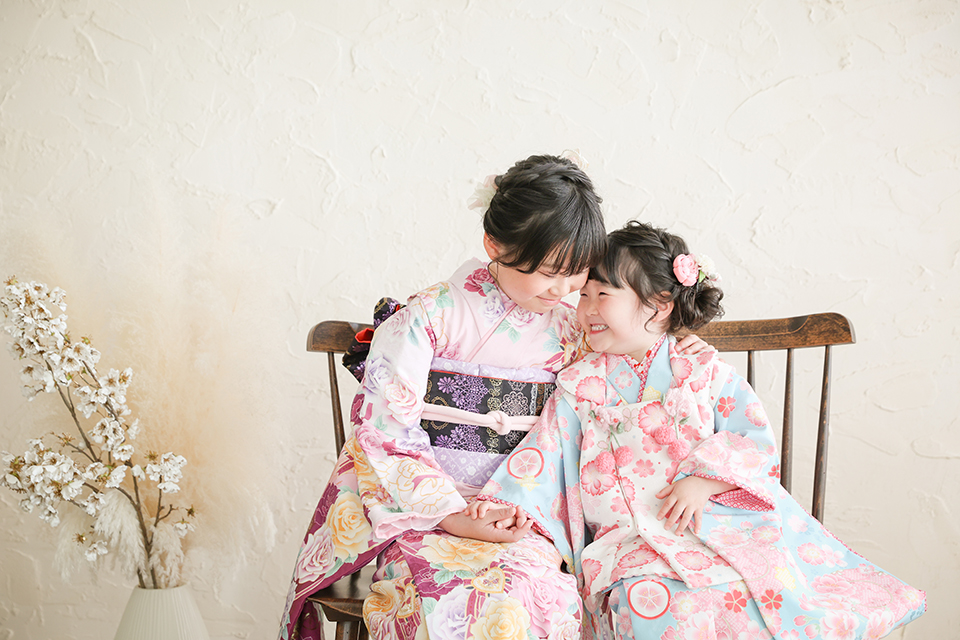 千葉市美浜区のおしゃれな写真館「アンズガーデン幕張本店」に七五三3才のお祝いでお越し頂いたご姉妹様です。