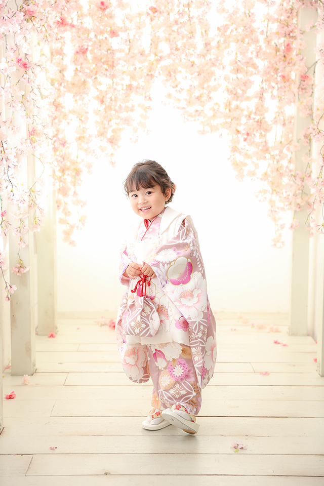 「七五三フォトプラン」をご利用いただき、着物とドレスでの撮影を行いました。