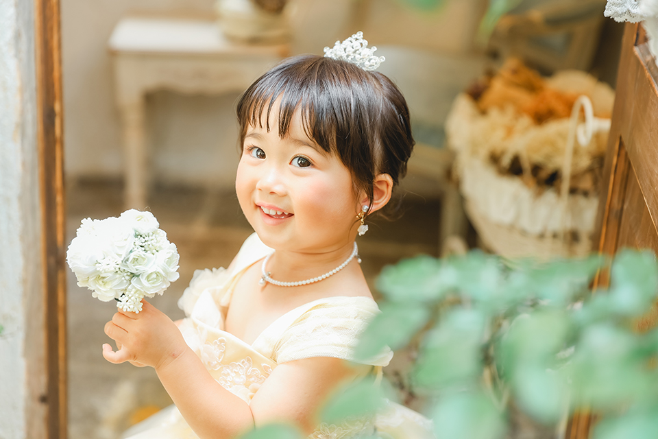 千葉市美浜区のおしゃれな写真館「アンズガーデン幕張本店」に七五三3才のお祝いでお越し頂いたお嬢様です。