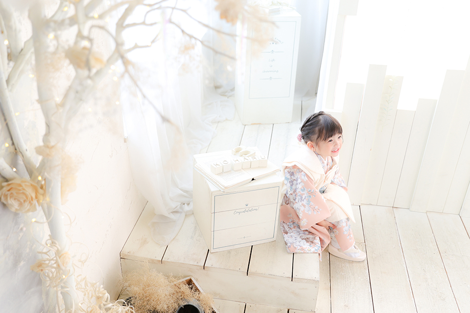 千葉市美浜区のおしゃれな写真スタジオ「アンズガーデン幕張本店」に七五三3才のお祝いでお越し頂いたお嬢様です。