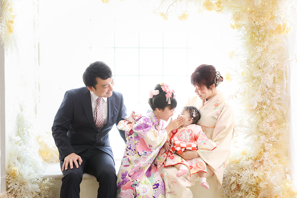 千葉市美浜区のおしゃれなフォトスタジオ「アンズガーデン幕張本店」に七五三7才のお祝いでお越し頂いたご家族様です。