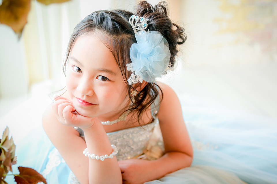 自然光スタジオで、プリンセスの笑顔がとても素敵なお写真です。