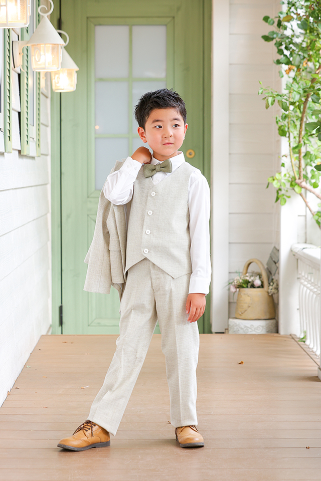 生成りでベージュのスーツをかっこよく着こなしてくれました。