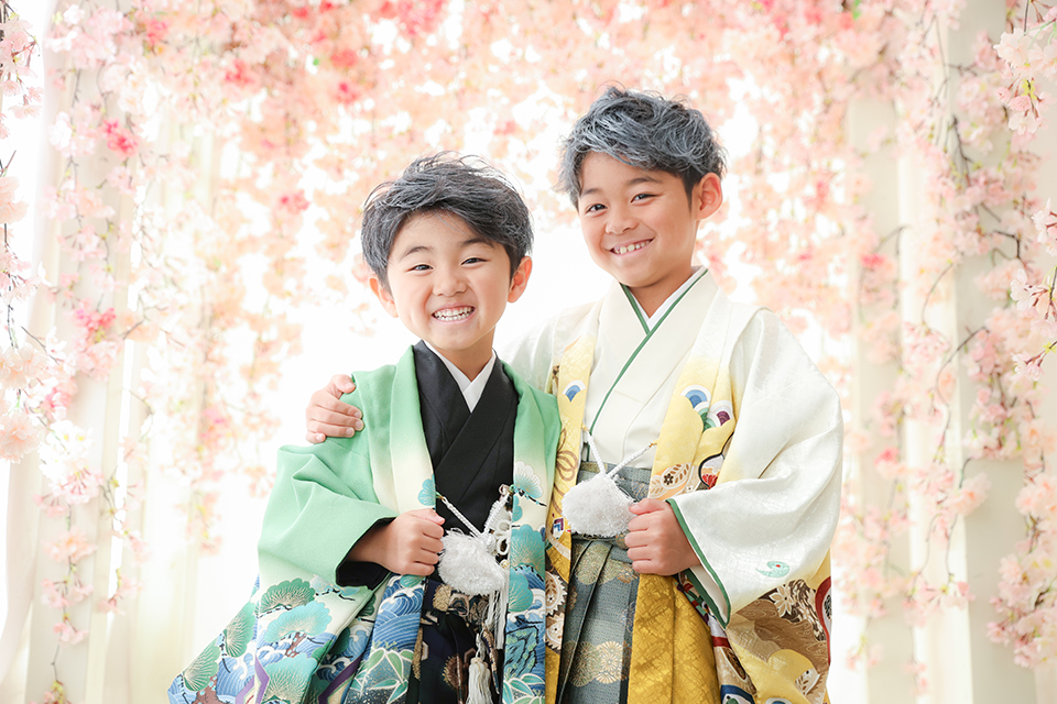 市川市にあるおしゃれな写真館「アンズガーデン市川店」でお撮りしたご兄弟の記念写真です。