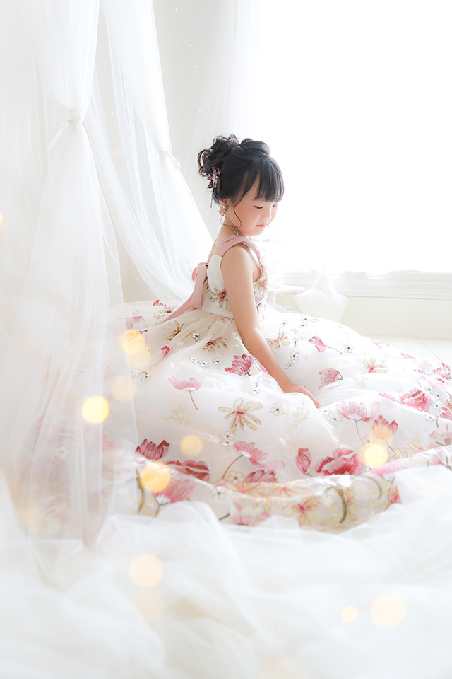 千葉市美浜区のおしゃれな写真スタジオ「アンズガーデン幕張本店」に七五三7才のお祝いでお越し頂いたお嬢様です。