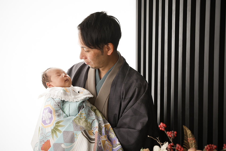 ご家族様は主役の赤ちゃんと一緒に、モダンな和室の他にも明るい自然光スタジオなど、色々なシチュエーションで撮影をお楽しみ頂きました。