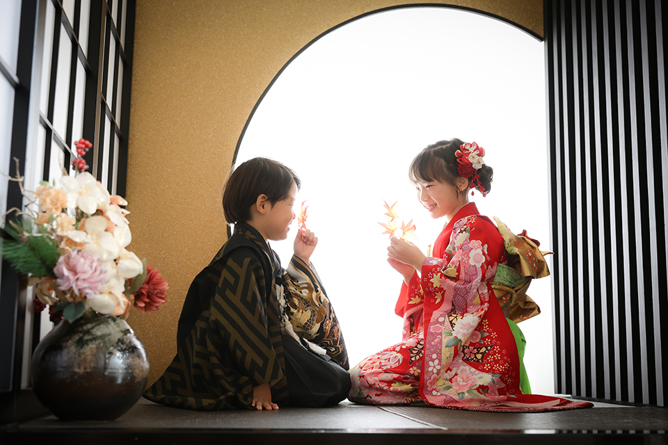 千葉市美浜区のおしゃれなフォトスタジオ「アンズガーデン幕張本店」に七五三7才と5才のお祝いでお越し頂いたごきょうだい様です。
