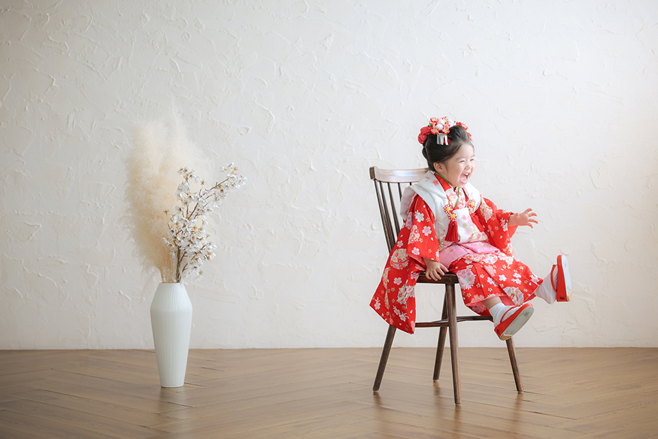 千葉市美浜区のおしゃれなフォトスタジオ「アンズガーデン幕張本店」に七五三3才のお祝いでお越し頂いたお嬢様です。
