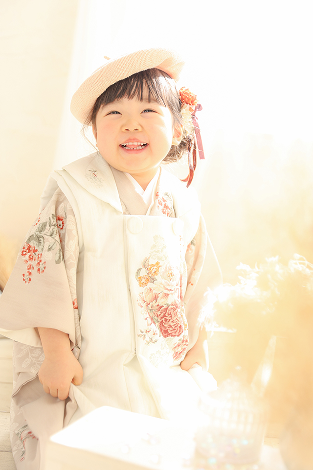 千葉市美浜区のおしゃれな写真館「アンズガーデン幕張本店」に七五三3才のお祝いでお越し頂いたお嬢様です。