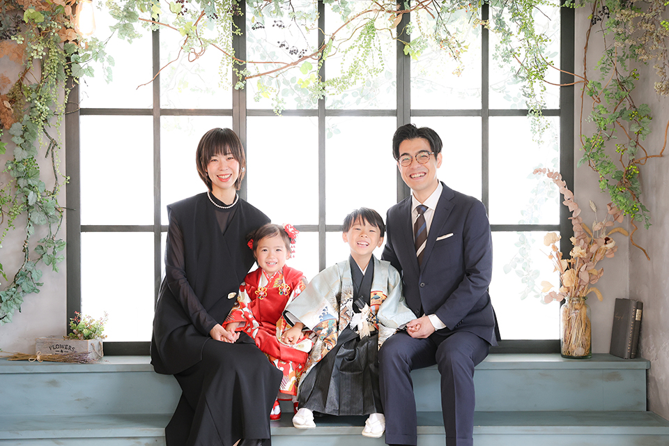 千葉市美浜区のおしゃれなフォトスタジオ「アンズガーデン幕張本店」に七五三3才と5才のお祝いでお越し頂いたご家族様です。