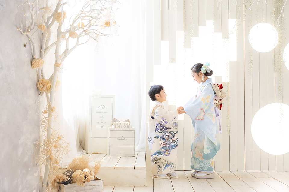 千葉市美浜区のおしゃれなフォトスタジオ「アンズガーデン幕張本店」に七五三7才と3才のお祝いでお越し頂いたごきょうだい様です。