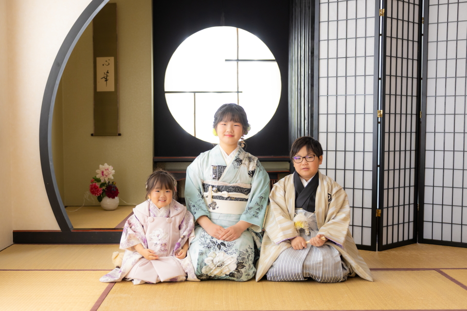 横浜店人気の和室スタジオで、ごきょうだい様の素敵な和装姿をお撮りした1枚です。