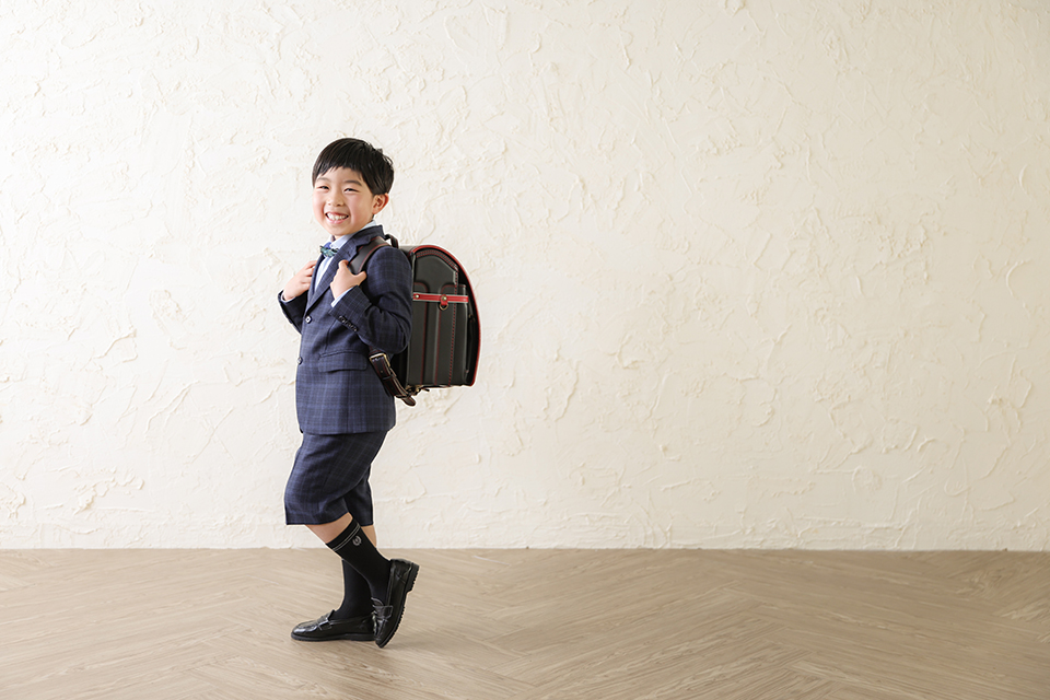 市川市にあるおしゃれな写真館「アンズガーデン市川店」で撮影された小学校入学の記念写真です。