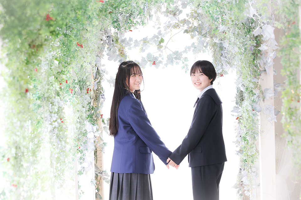 千葉市美浜区のおしゃれな写真スタジオ「アンズガーデン幕張本店」に高校入学と中学校入学のお祝いでお越し頂いたご姉妹様です。